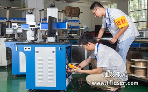 最后要注意的是,要想光纖激光打標機經久耐用,最好選擇質量可靠的老牌子,深圳通發激光12年專注激光打標機制造,國家高新技術企業,業界口碑好,值得信賴!(下圖為TFL-F20CY光纖激光打標機質檢中)