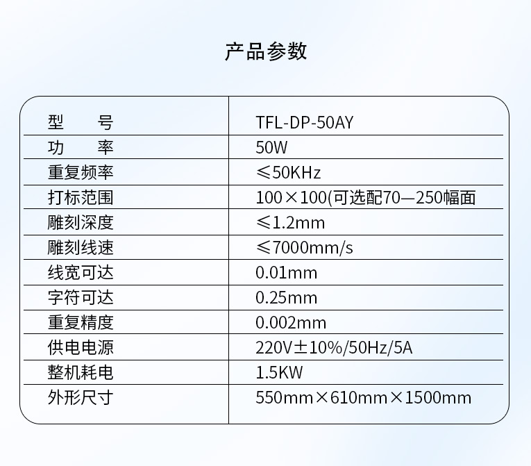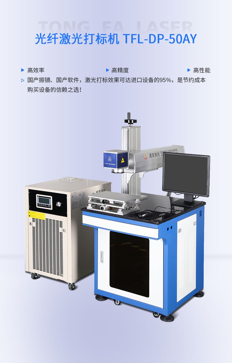 通發(fā)激光研發(fā)TFL-DP-50AY激光打標(biāo)機(jī),可針對各種金屬,塑膠進(jìn)行激光打標(biāo)加工,本激光鐳雕機(jī)配置成熟國產(chǎn)激光器,國產(chǎn)振鏡、國產(chǎn)軟件,性價比高,是普通金屬打標(biāo)機(jī)的好選擇!!!