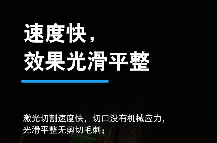 適用范圍廣,可加工銅、鋁、不銹鋼、鐵、pcb板、磁性材料等多鐘材料。幅面大小可選,長度可根據(jù)用戶加工需求定制。切割速度快,效果光滑平整,切口沒有機械應力,光滑平整無剪切毛刺。